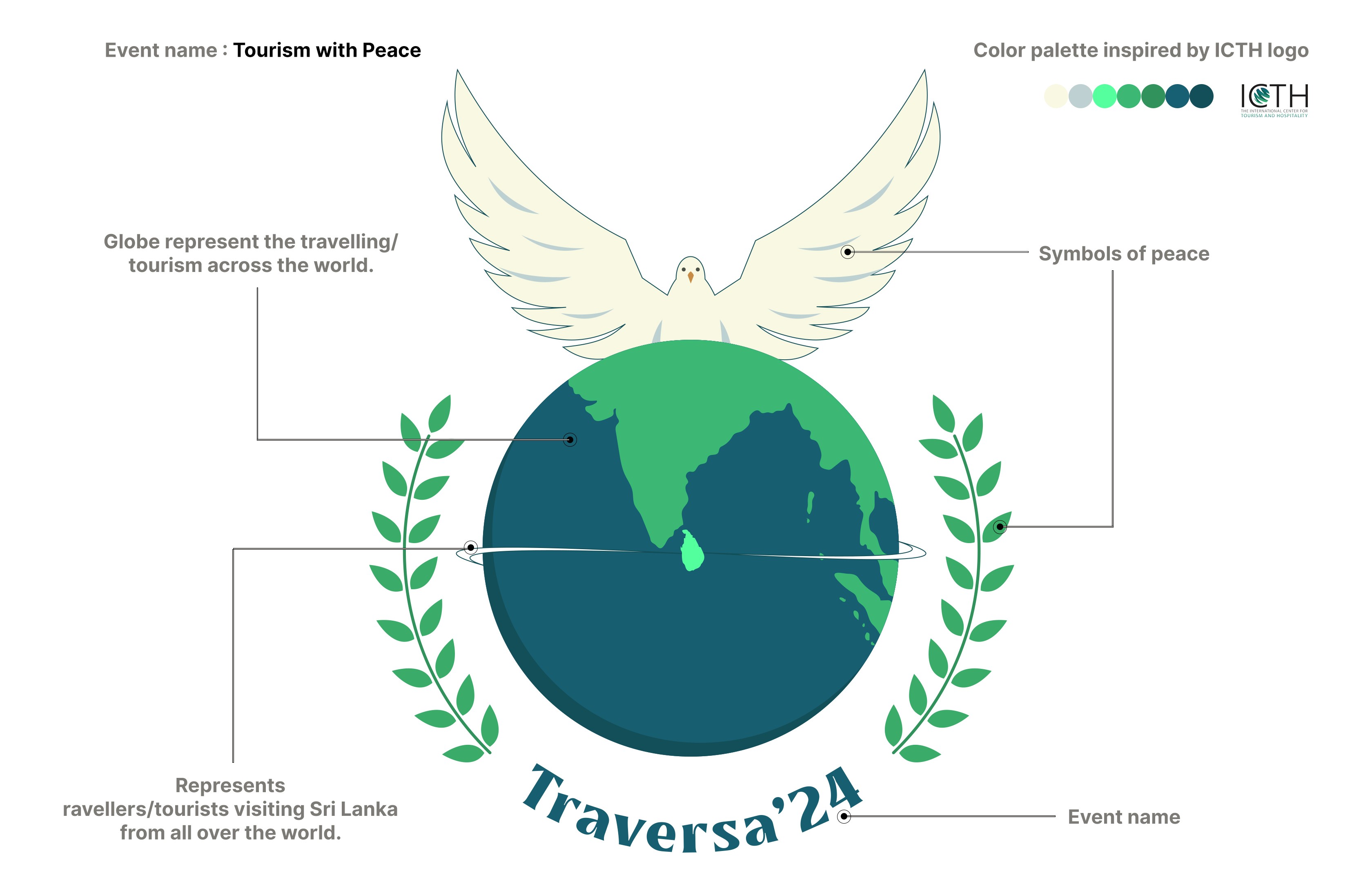This project was for the International Center for Tourism and Hospitality (ICTH) at NSBM Green University. They were organizing Traversa’24, an annual event focused on the tourism industry. The theme for this year was, Tourism with Peace.