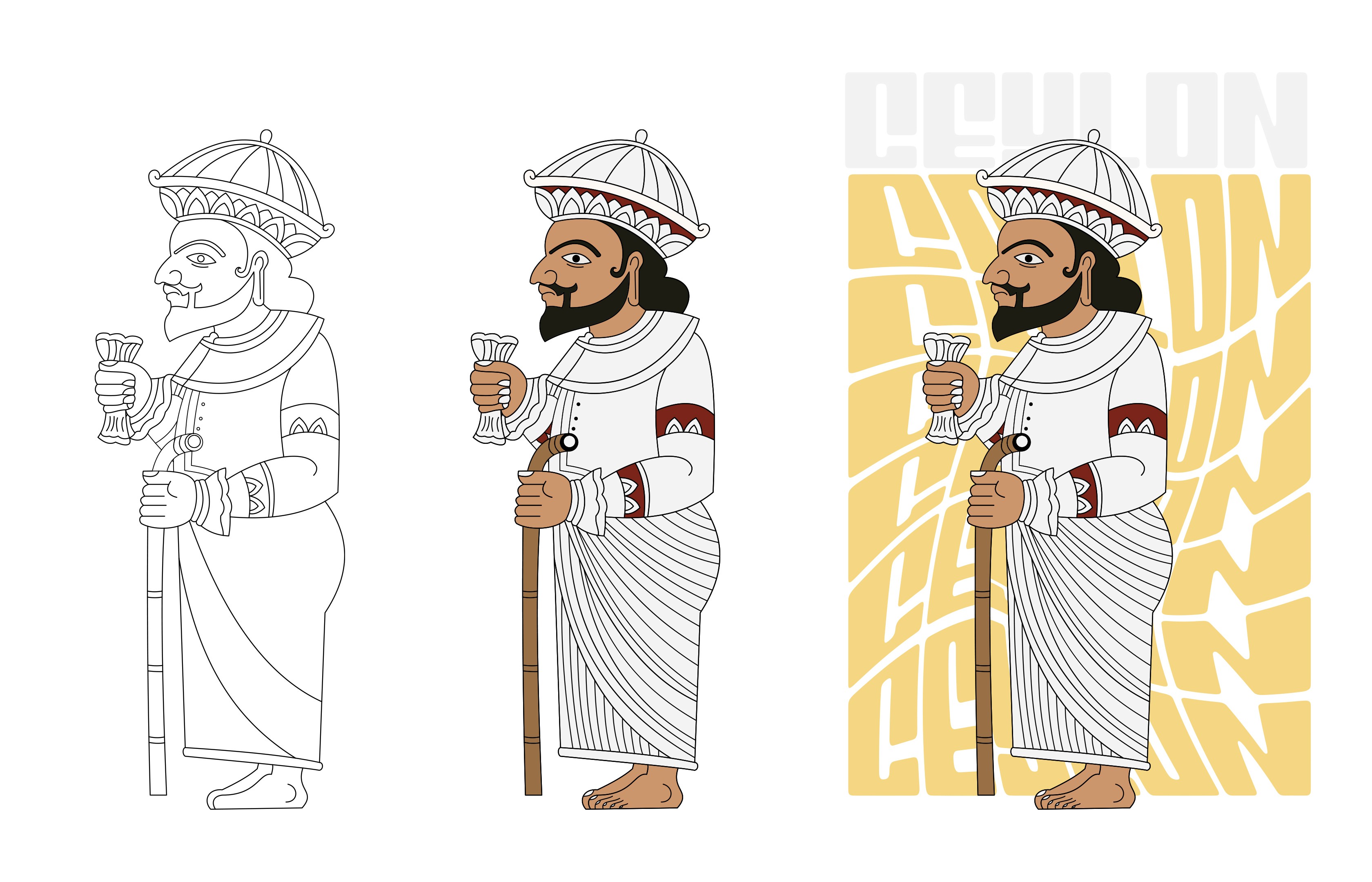 This personal project was inspired by the traditional art style of the Kandyan Kingdom era frescoes, which are known for their rich detail, symbolic figures, and earthy color palettes. I titled the piece “The Kandyan” to pay homage to its roots.