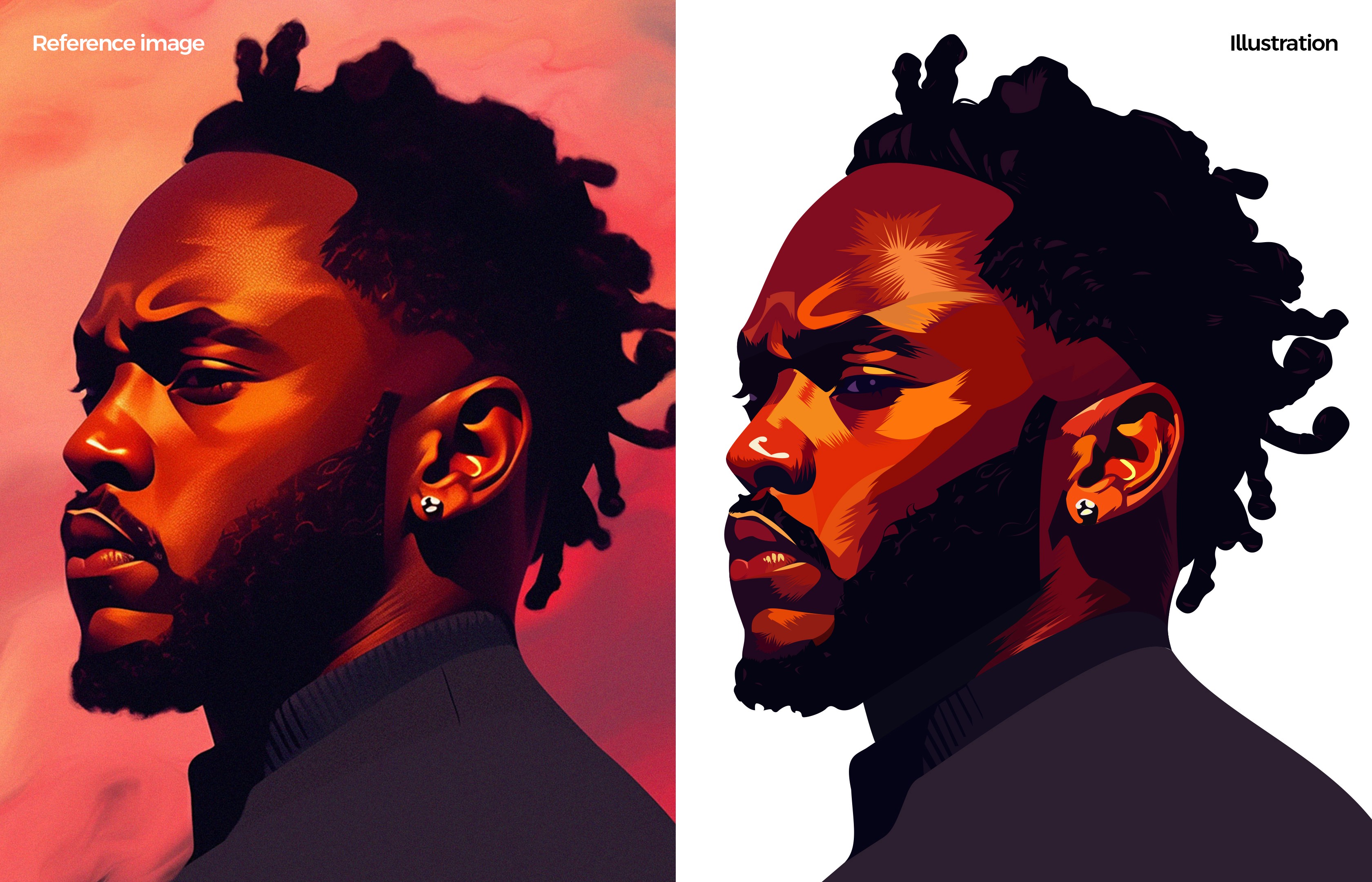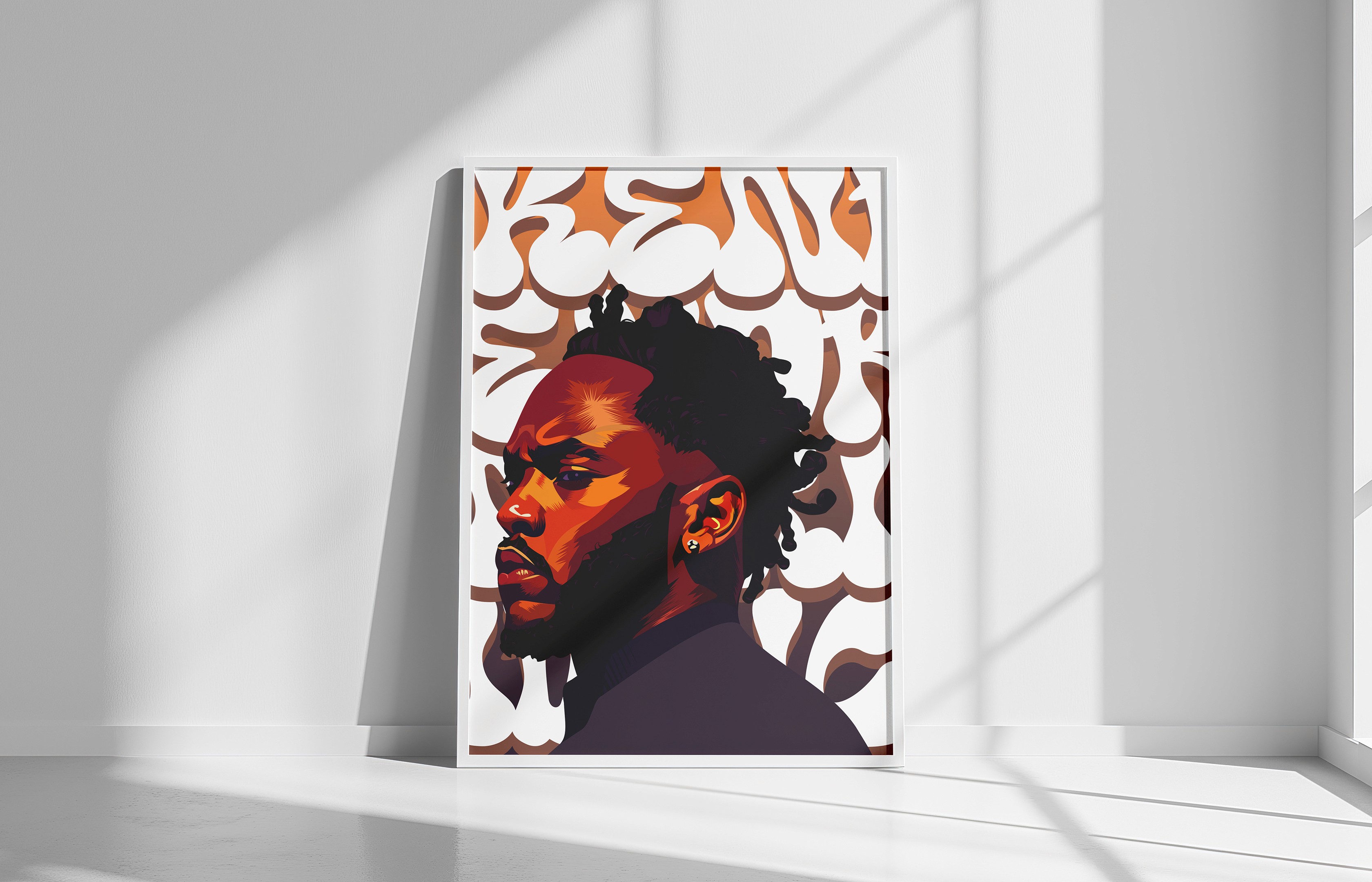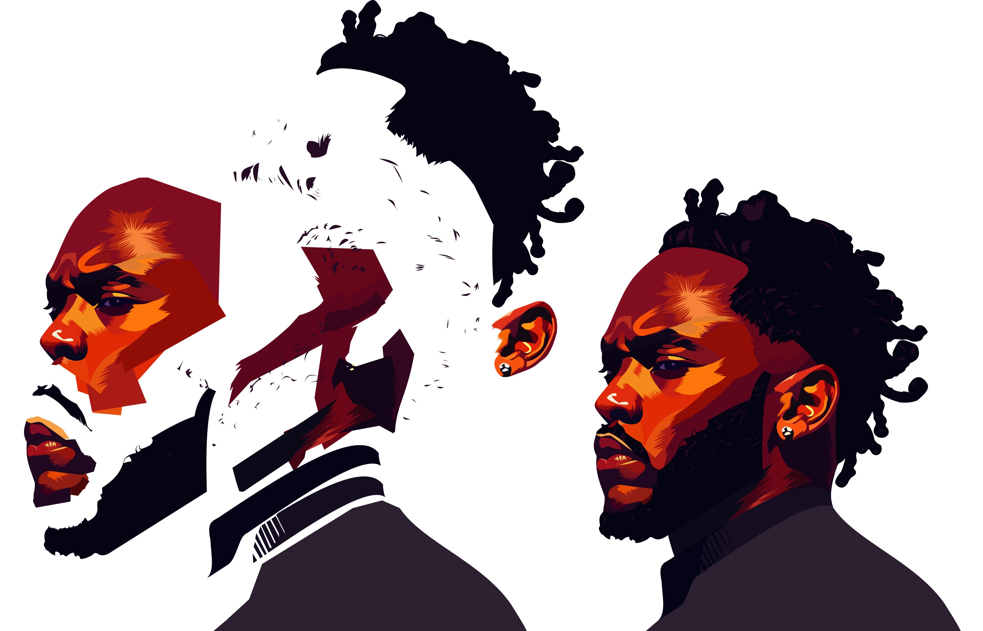 This was my first full vector portrait created using Adobe Illustrator, completed in just two days. The artwork was a personal fan tribute to American rap artist Kendrick Lamar, also known as K.Dot.