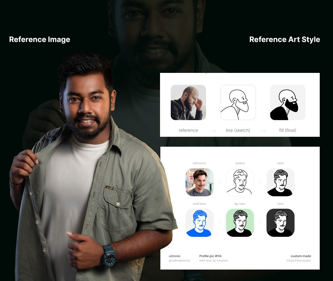 The client requested a custom vector illustration to use as the profile image on their website. They provided a reference photo along with the preferred art style, which helped establish a clear direction for the project.