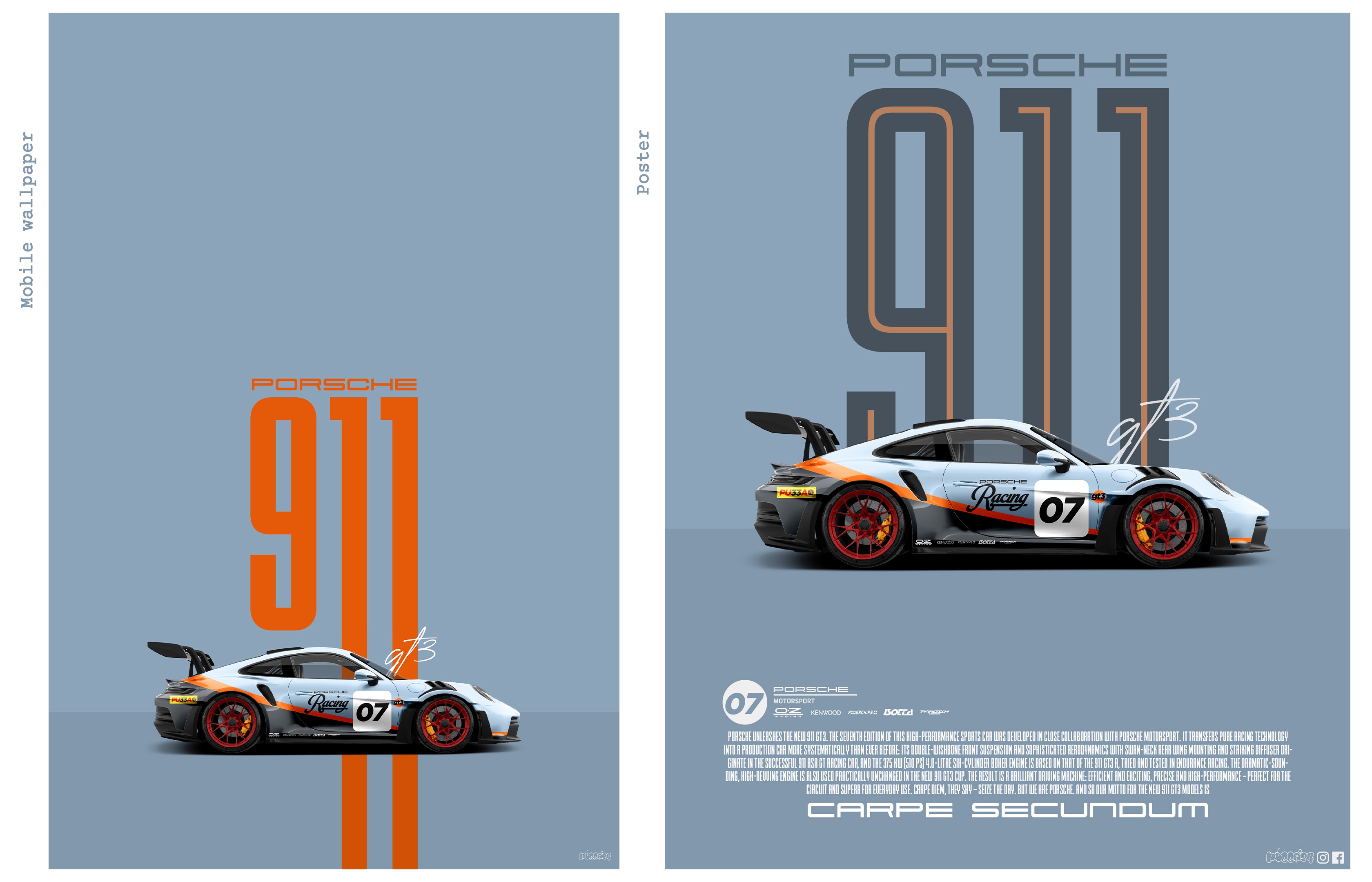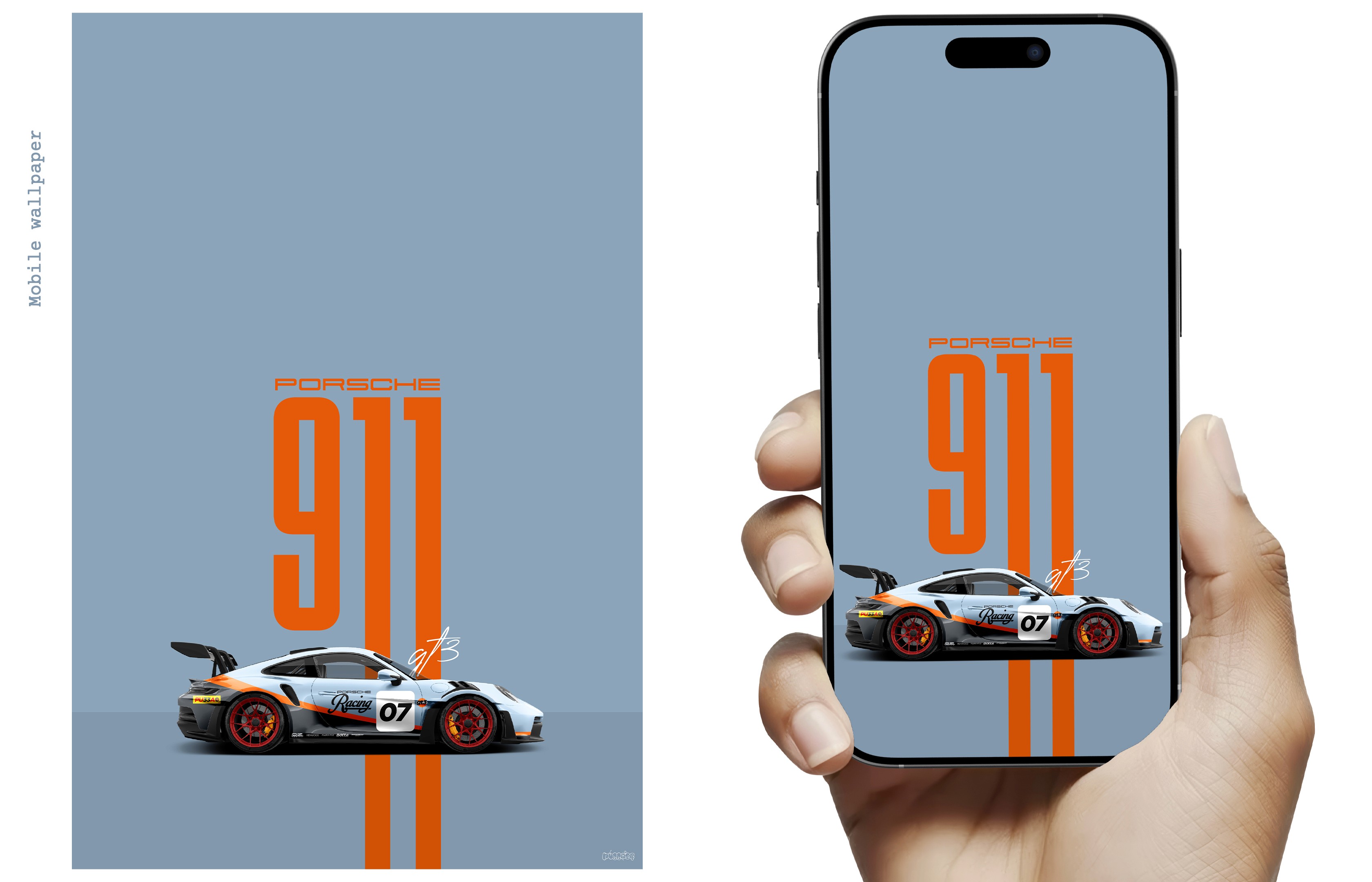 This self-initiated project was created as a visual tribute to the Porsche 911 GT3, one of my favorite automotive designs. The goal was to produce both a mobile wallpaper and a high quality poster that reflect the car’s legacy through clean, minimal design.